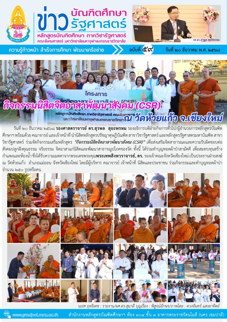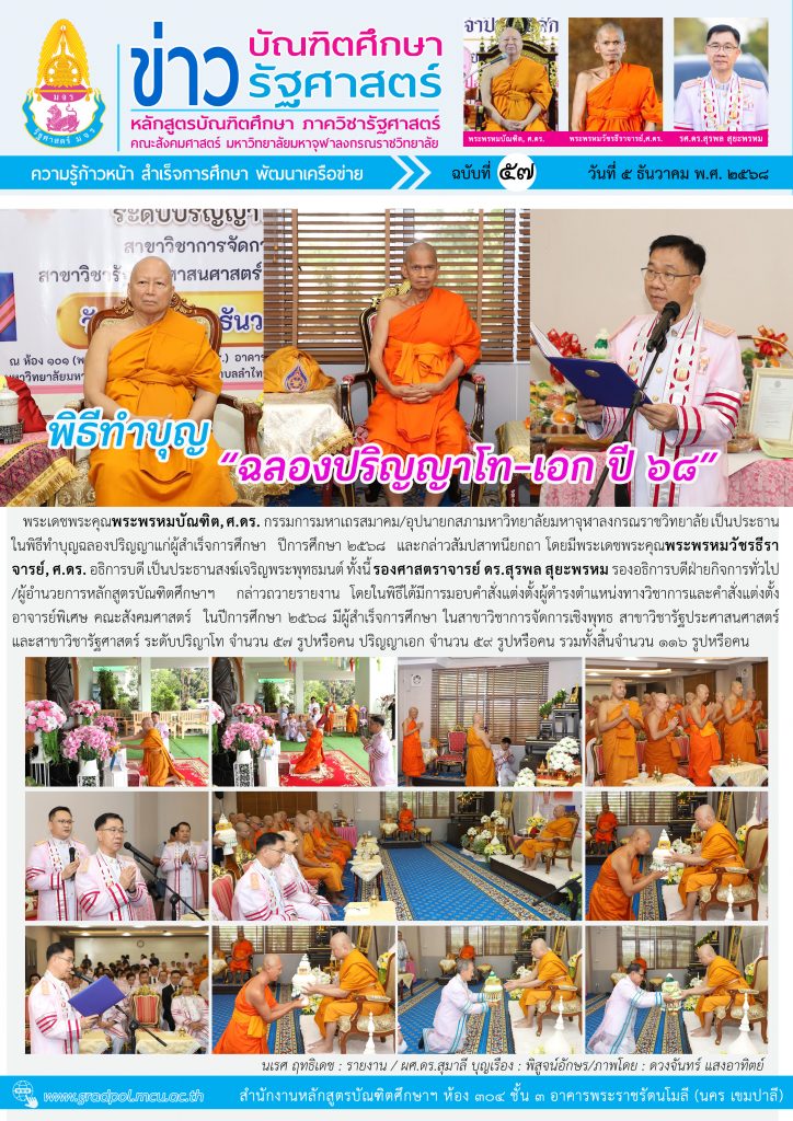 หลักสูตรบัณฑิตศึกษา ภาควิชารัฐศาสตร์